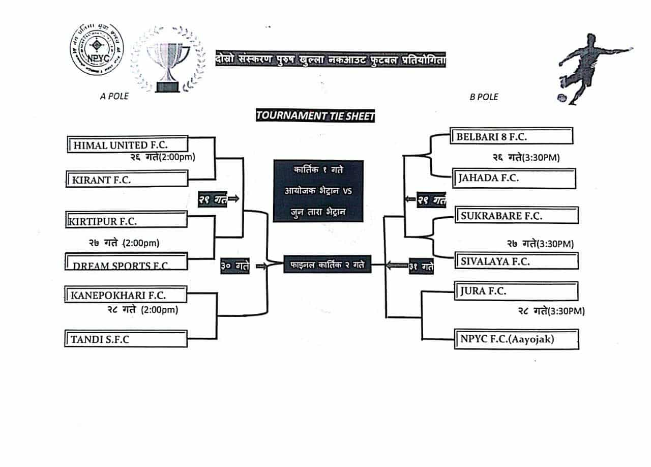 प्रतियोगितामा सहभागी हुने टिमले ५ हजार रुपैयाँ इन्ट्री फि बुझाउनु पर्ने आयोजकले बताएको छ । खेल कानेपोखरी ३ स्थित हरकपुरको खेल मैदानमा हुनेछ । पहिलो चरणको खेल दिनको ठिक २ बजे र दोश्रो चरणको खेल ३ बजेबाट सुरु चल्नेछ ।